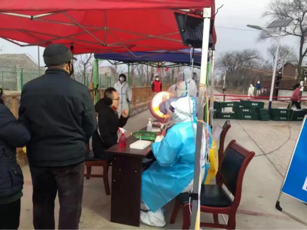 四点起床,五点出发,六点大筛,零下5度的黑夜中,依靠着微弱的路灯光亮辨别掰断棉签的刻线,手指僵硬不可屈伸,连续工作近两小时,协助医护人员核酸采样近700份。克服了凌晨气温低等不利因素,保证了任务的顺利完成。