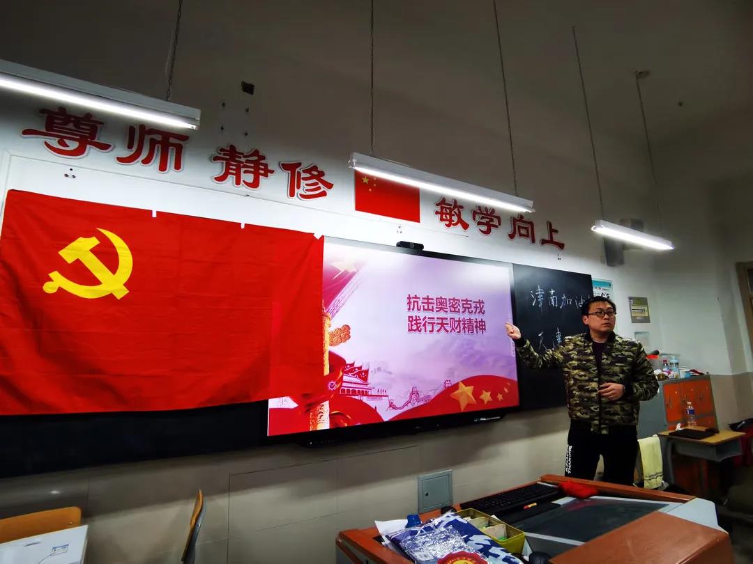 三次支部活动既有支部的组织建设、理论学习,也有实践经验分享,更有精彩的战“疫”党课。在一次名为“重温入党誓词 学习抗疫英雄 践行天财精神”的主题党日活动中,党支部书记郭德友带领支部全体党员学习人民英雄张伯礼的先进事迹,并面对党旗重新宣读入党誓词,要求党员充分发挥天财人“不畏风险、奉献自我”的精神,用实际行动践行初心、用担当诠释使命,坚决完成抗疫支援任务。