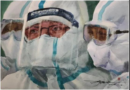 滑寒冰老师的作品表达了对医护人员的感激之情,在这次抗疫过程中,当你能够为社会为他人服务的时候,是最幸福的时候,当胳膊扎上“工作人员”的袖罩,穿上红马甲的时候,意志力显得格外的坚强。这幅作品是抓住天使检测的瞬间,如此的专注,彰显着世间的大爱。