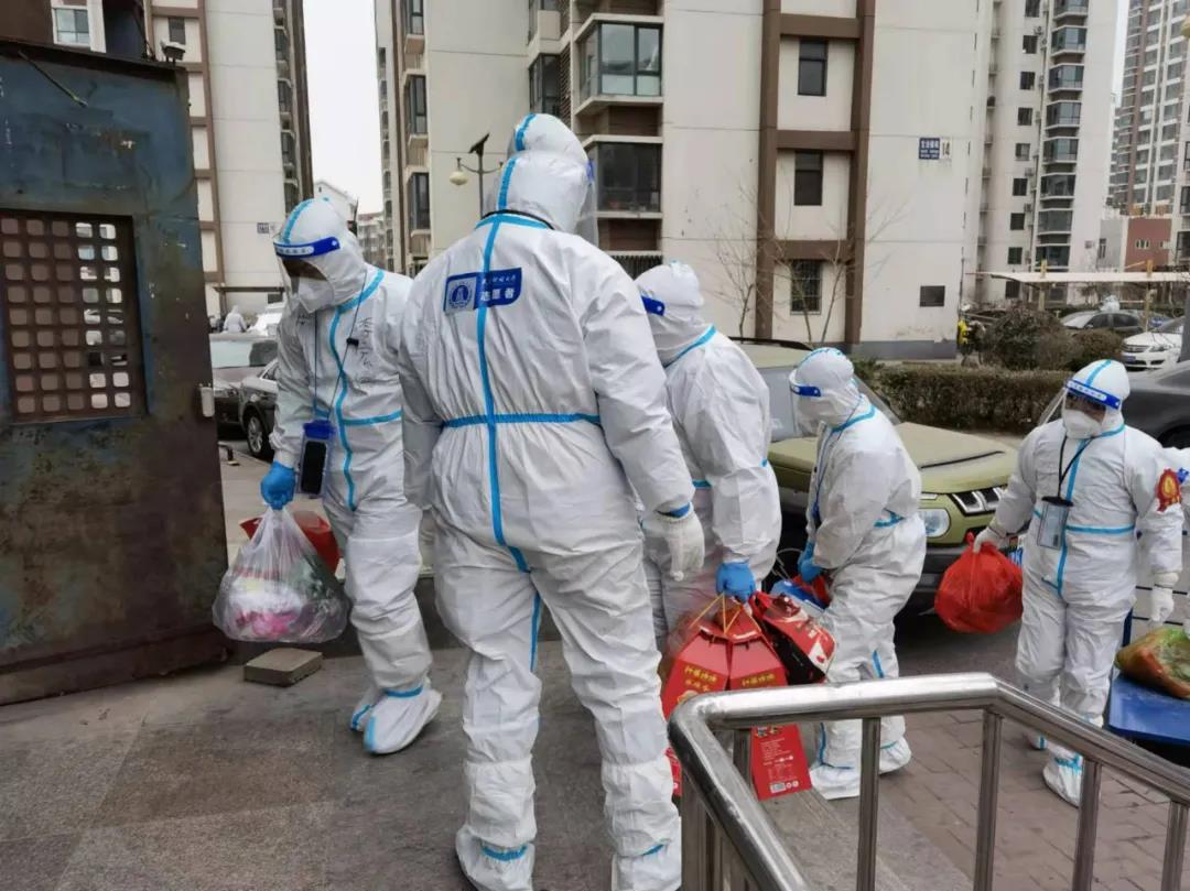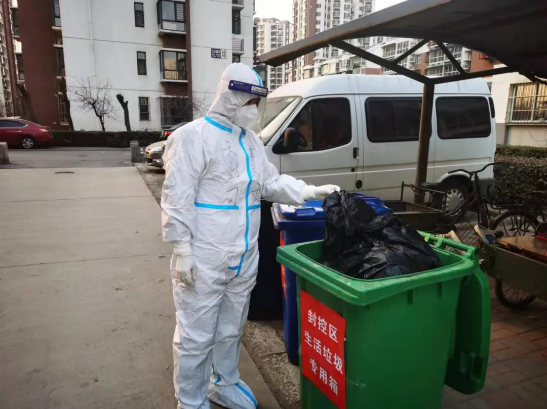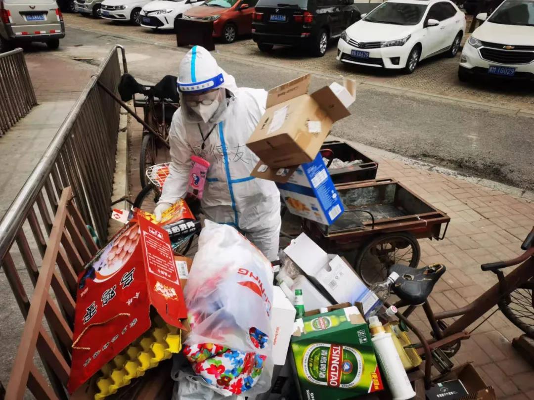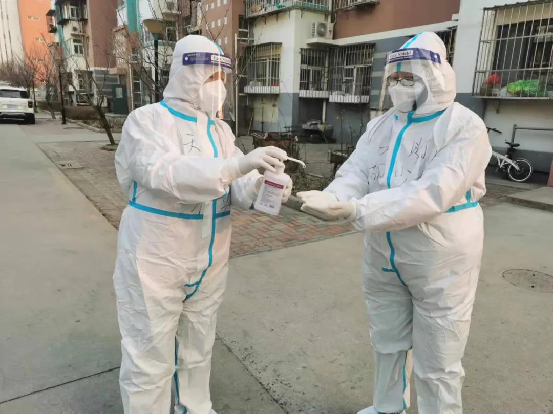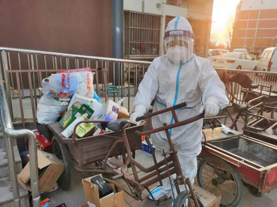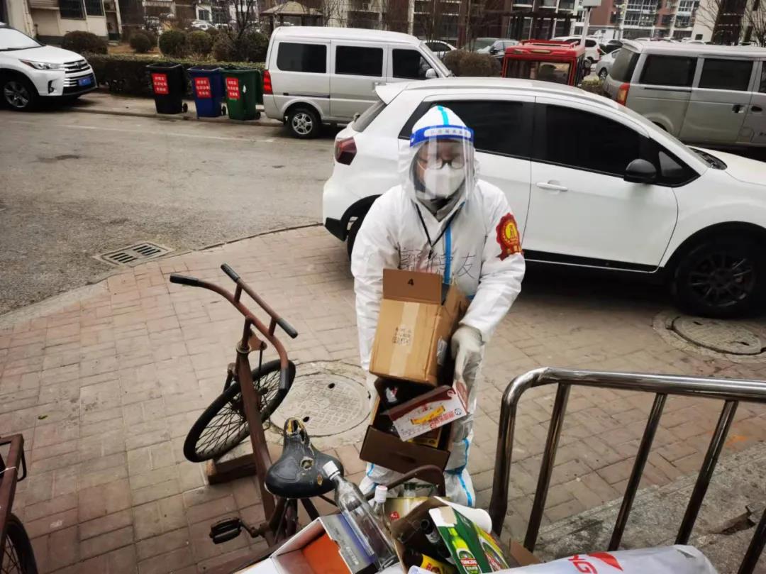 在封管控区,做好防控工作的第一步便是自我消杀。这就要求支援队的老师们在每一次接触外部物体后,都需要对手部进行消毒。一天下来,在不断地帮助居民配送生活物资、倾倒生活垃圾等一连串不间断的工作后,很多老师的手都因长期接触酒精而出现了不同程度的皲裂。虽然天寒地冻,但他们顾不上寒冷,一心只想快一点、再快一点,尽量减少群众等候时间。