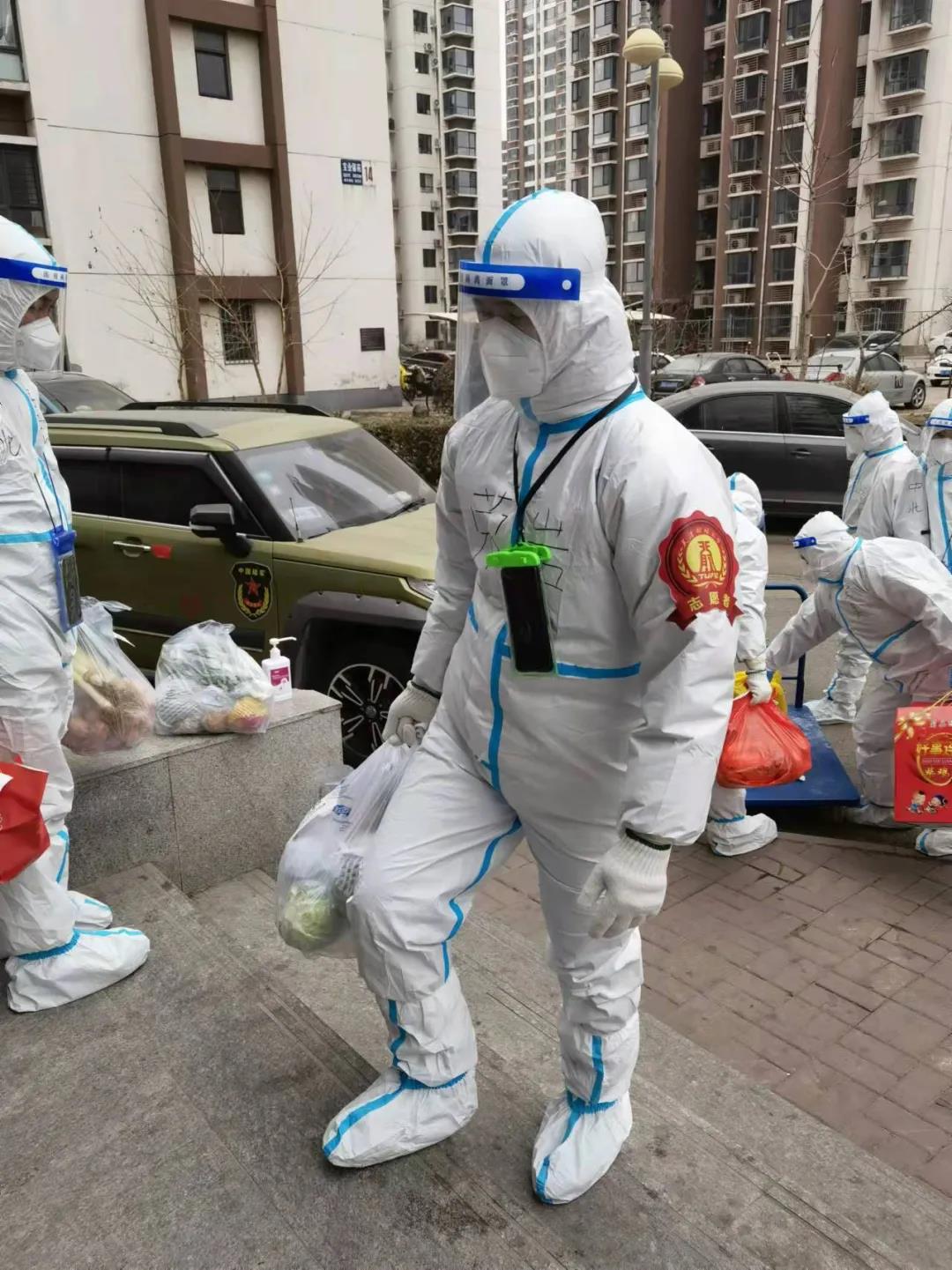 支援队中管科学院解伟老师的父亲就职于学府街社区医院,自天津疫情爆发以来就一直坚持在工作岗位,至今也没有回家。妻子是中学老师,前期已经作为下沉干部,参加了河东区全市大筛工作,时长长期工作到深夜。家中八个月大的孩子也只能交给奶奶照看。但解伟老师在接到通知后,克服家庭困难,未有丝毫犹豫,奔赴抗疫前线。此次支援中,他负责的宝业馨苑17号楼共有88户居民,是小区中居民最多的楼门。解伟老师充分发扬天财精神,积极为该楼居民排忧解难,除配送生活物资外,还主动与外出居民沟通,不断解释小区现状与现有政策,尽最大努力获得居民理解,让管控工作进行得更为顺利,也为社区整体疫情防控工作贡献自身力量。当被问到辛苦不辛苦的时候,解老师也总是只是轻轻的回复一句“不辛苦,绵薄之力。”第二天一早,他又和大家一起精神抖擞地投身到本职工作中。