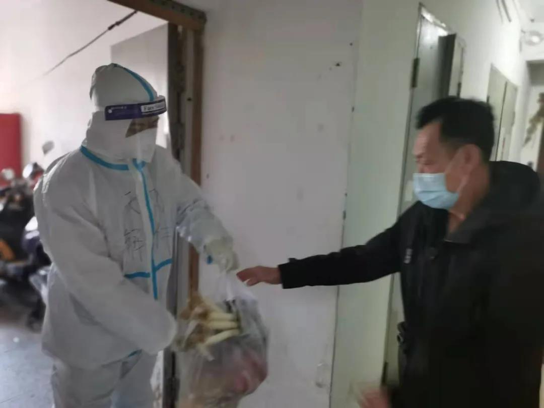 除了本职工作外,支援队还积极为居民们解决各种各样的生活难题,例如:老师们主动帮助居民因递送问题丢失的生活物资;老师们要帮助联系、引导救护车运送突发疾病的社区病人;即便在轮岗休息的时候,老师们也并没有停下脚步,连忙帮着驻地工作人员和志愿者们订盒饭、搬运物资、打扫卫生。看一看居民家里的物资储备够不够,问一问“还有什么困难”。一枝一叶总关情,人民群众就是每一位共产党员干部的心心念念,这份牵挂暖至人心!