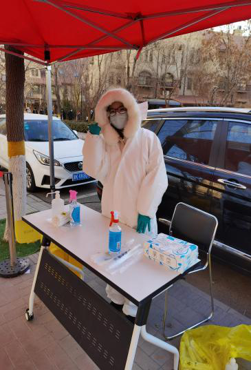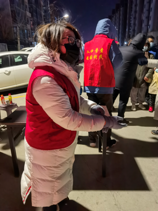 闻令而动、听令而行。人文学院英语系教师党支部申彩红老师一接到津南区委的通知,立即全身心投入到抗疫志愿服务工作中,不顾家中还有两个年幼的孩子,克服重重困难,一连两天坚持在抗疫第一线,以超强的学习力快速掌握录入信息、入户核查等工作要领,每两小时轮值在岗,在寒风呼啸的黑夜中,身穿防护风,耐心高效地执行工作任务。