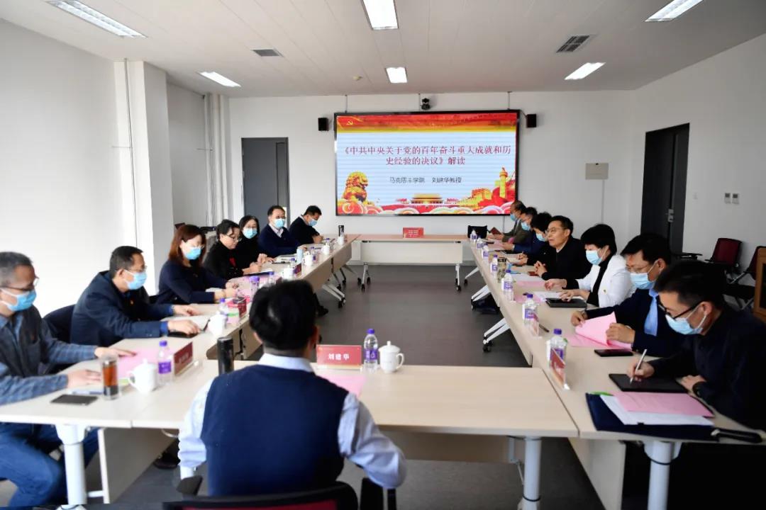 为深入学习宣传贯彻党的十九届六中全会精神,根据中央、市委、市教育两委的统一部署,11月24日,校党委理论学习中心组走进马克思主义学院,与学院党委理论学习中心组开展联学,共同深入学习党的十九届六中全会精神,并结合学习和工作实际广泛交流研讨。教育系统党史学习教育巡回指导二组副组长、工委宣传处处长许瑞,成员工委宣传处副处长胡洪到会指导。专题学习研讨由校党委书记张亚主持。此次专题学习研讨是继上周校党委理论学习中心组传达学习六中全会精神之后的再一次专题集中学习。会前,中心组成员利用工作之余静下心、坐下来,心无旁骛认真研读《中国共产党第十九届中央委员会第六次全体会议公报》和《中共中央关于党的百年奋斗重大成就和历史经验的决议》,深学细悟习近平总书记关于《中共中央关于党的百年奋斗重大成就和历史经验的决议》的说明,在前期自学的基础上,采取集中学习、交流研讨的方式,专题学习党的十九届六中全会精神,以扎实的理论武装推动全会精神的学习宣传贯彻。