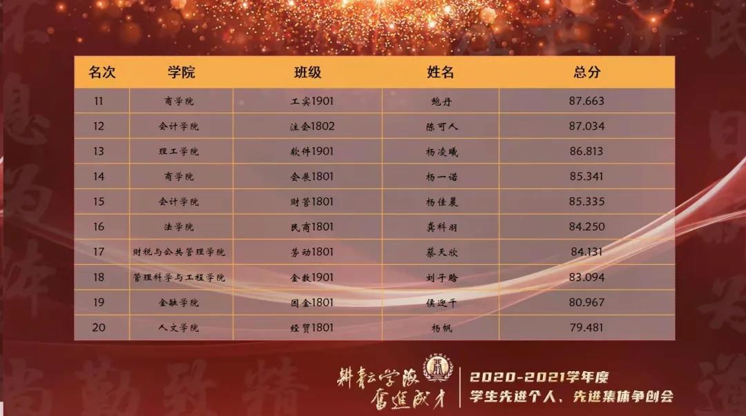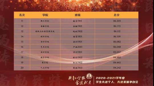 最终,信管1901班等十个班级获评校级“十佳集体”荣誉称号,数学1901班等十个集体获评校级“优秀集体”荣誉称号。
