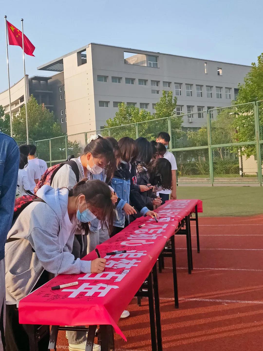升旗仪式结束后,“铭记历史 不忘初心”横幅签名活动接续进行,师生代表纷纷在横幅上签下自己的名字。革命烈士浩气长存,革命烈士永垂不朽,饮水思源才知幸福来路,感恩奋进才能走向富强。
