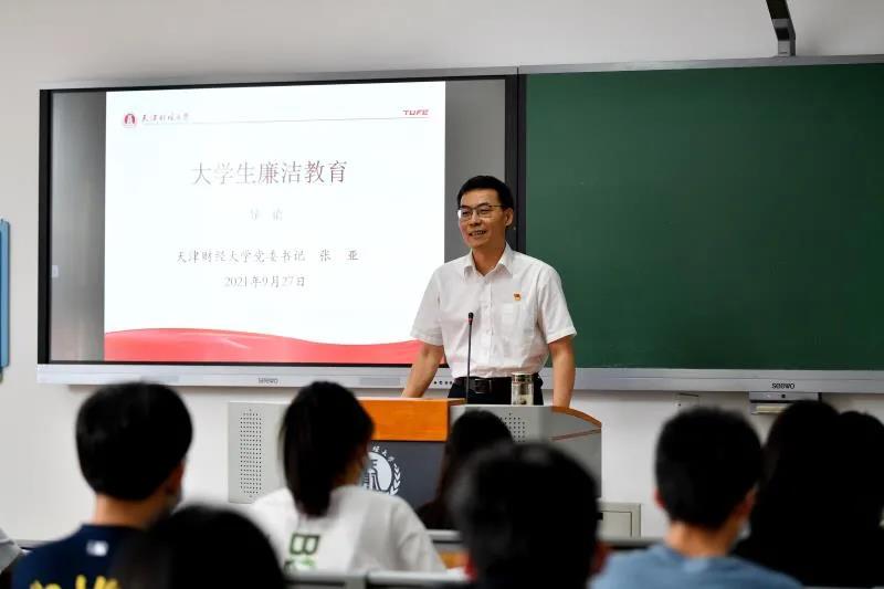 张亚书记本次“开学第一课”以廉洁教育为主题,从财经类学生既要会算账目的“小账”,更要算好人生的“大账”入手,结合习近平总书记“强化不敢腐的震慑,扎牢不能腐的笼子,增强不想腐的自觉”的重要论述,联系自身青年时期成长经历及部分真实案例,引领同学们坚定为公为民的理想信念、树立廉洁奉公的职业操守、强化严守纪律的法制观念、笃行向上向善的道德自律,克己奉公、清正廉洁,健康成长、全面成才,努力成长为能够担当民族复兴大任的时代新人。