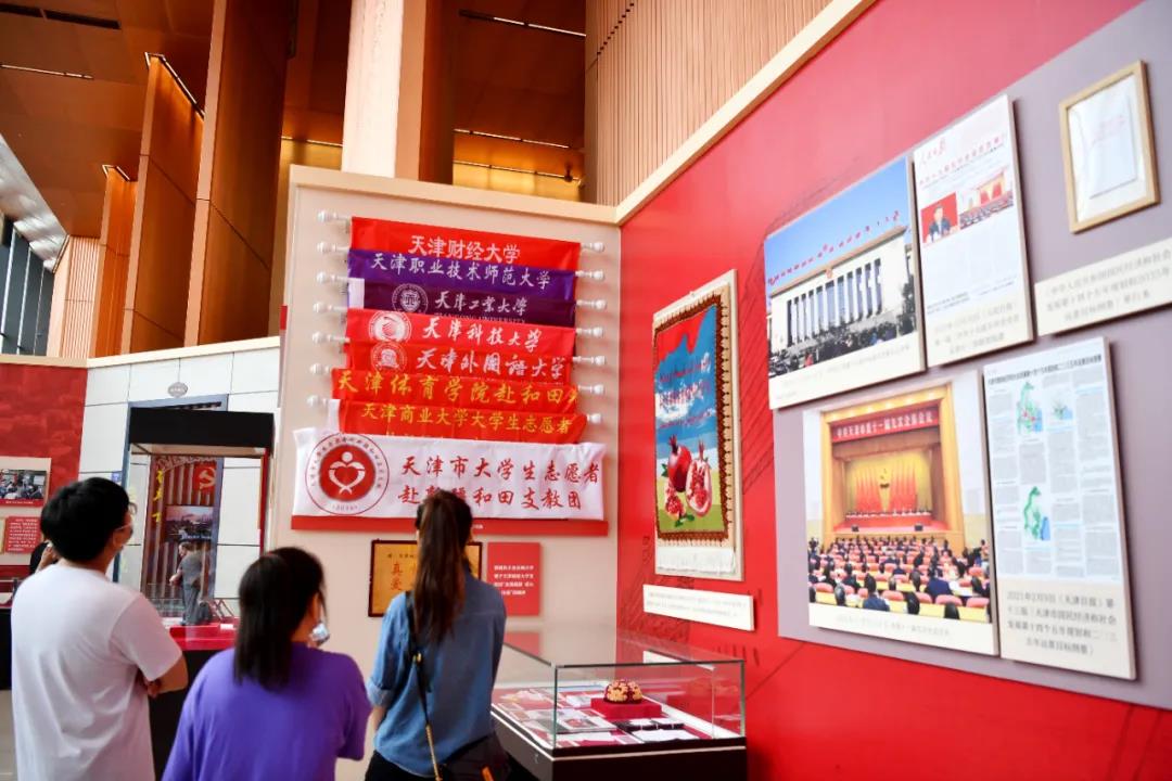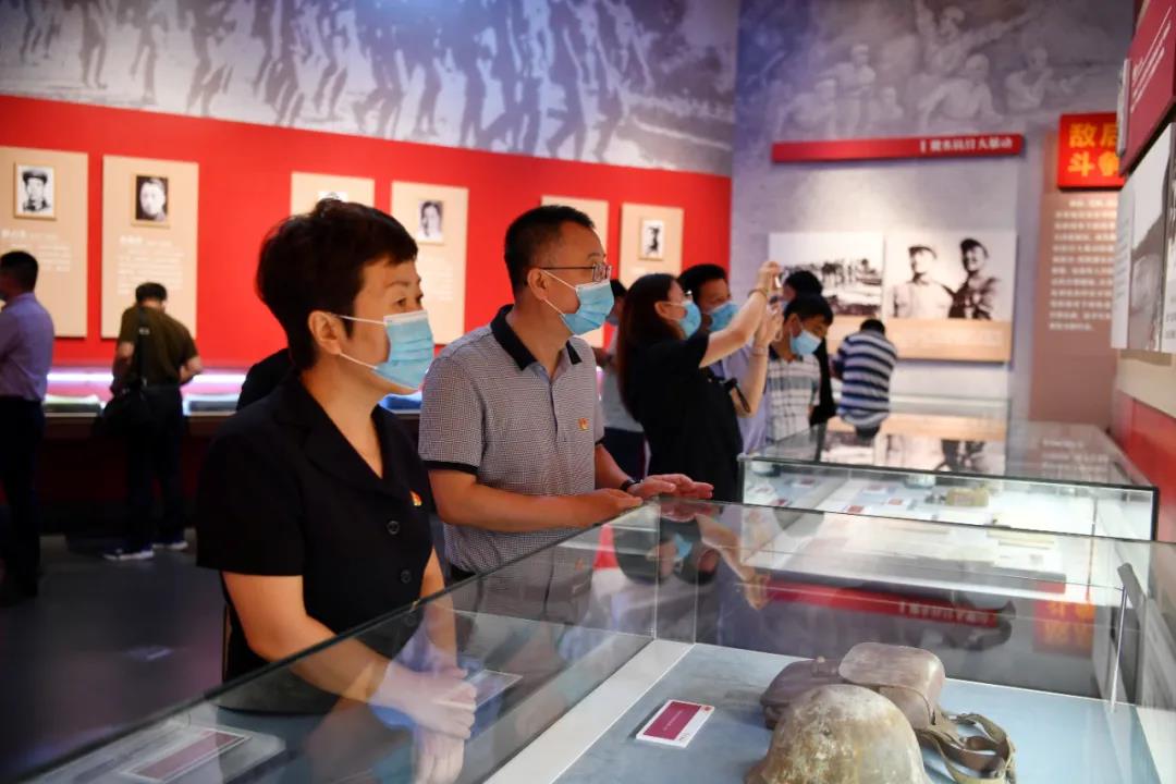 为深学深悟习近平总书记在庆祝中国共产党成立100周年大会上的重要讲话精神,进一步贯彻落实党史学习教育,深切体悟中国共产党在天津的百年奋斗史,接受革命文化和红色精神洗礼,接续奋进力量。7月14日,校领导刘金兰、侯洁、马岩、韩少波与全体处级干部、基层党支部书记、专职组织员200余名干部赴天津博物馆参观“红色记忆──天津革命文物展”。