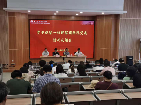 在巡察商学院党委情况反馈会上,党委巡察组组长肯定了学院近年来事业发展取得的成绩,重点指出学院党委存在的突出问题:贯彻落实党的路线方针政策和党中央重大决策部署及市委、校党委重要工作部署有差距:政治核心作用发挥不明显;中心工作推进有欠缺;落实立德树人根本任务标杆作用有差距;对意识形态工作重要性认识不够。推进全面从严治党不到位,作风建设抓而不实:履行全面从严治党主体责任不到位;发挥纪委监督责任有差距;作风建设不扎实。基层党组织建设有短板:领导班子发挥表率作用不够;基层党建工作不扎实。