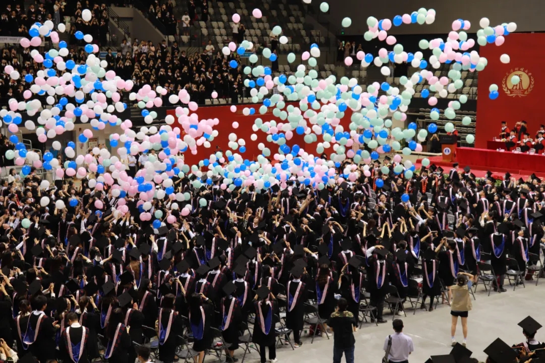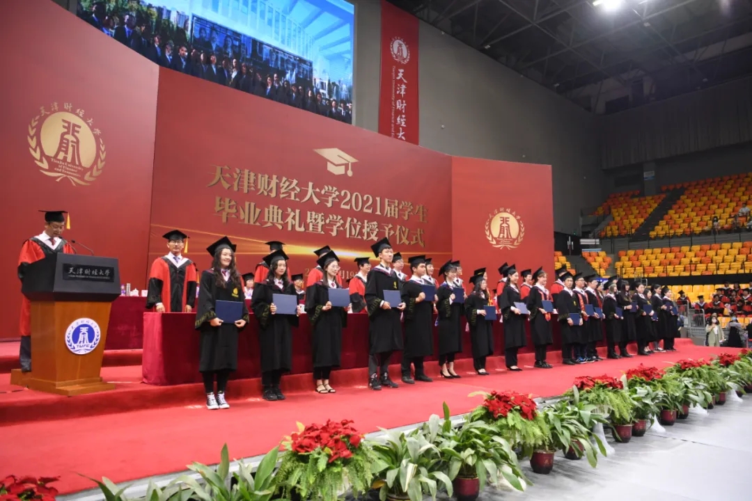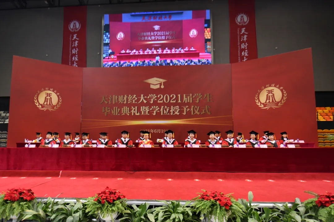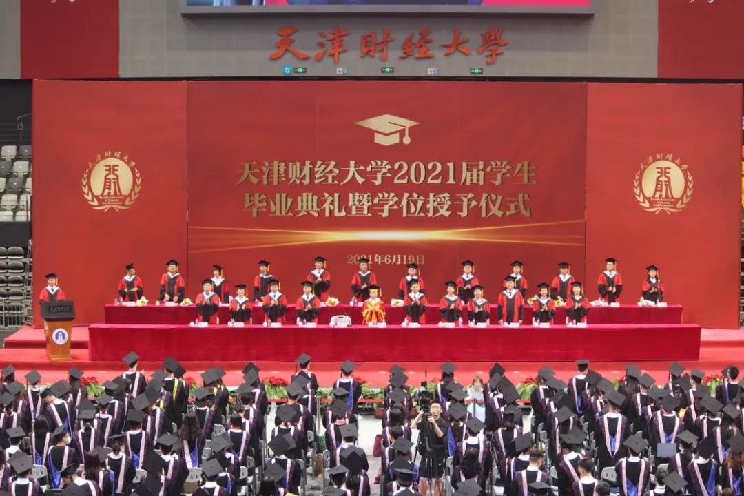2021年6月19日上午9:00,2021届天津财经大学毕业典礼暨学位授予仪式在我校综合体育馆举行。毕业生们齐聚于此,怀揣着对未来的憧憬,及对大学生活的不舍,一起奔赴这场“离别盛宴”。校领导张亚、刘金兰、侯洁、赵宏、廉军、王军、孟昊出席典礼。毕业典礼由党委副书记马岩主持。各学院教师代表走红毯,一同参加典礼,共同祝福全体毕业生。