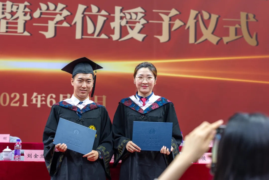 在2021届毕业典礼上,刘金兰校长满怀对毕业生的不舍与期许,殷切希望毕业学子能够有如下判断与坚守。一是立足全局,投身变局。习近平总书记多次指出,要面对世界百年未有之大变局,把控好自己未来前进的路,需要同学们“登高博见”,以更为高远的格局,丰盈宏阔的视野,顺应时代,创造未来,为国家民族的美好未来去奋斗,为人民的幸福去奋斗。二是追求新知,坚守良知。希望大家保持自主学习的习惯,持之以恒地丰富自身的知识结构,坚持不懈地进行前沿知识的更新迭代。同学们在毕业离校后继续葆有赤子之心,求新知、守良知,用你们的智慧,把握并驾驭未来的人生航程。三是莫问可为,但求有为。学习和实践是永远分不开的,循着这样一条路,我们将真正有所作为,不断接近心中的目标。希望大家久久为功,锲而不舍坚持不懈,在达到质变的跳跃前需要付出艰辛的努力,才能在不断发展演进的世界中找到专属于自己的位置。
