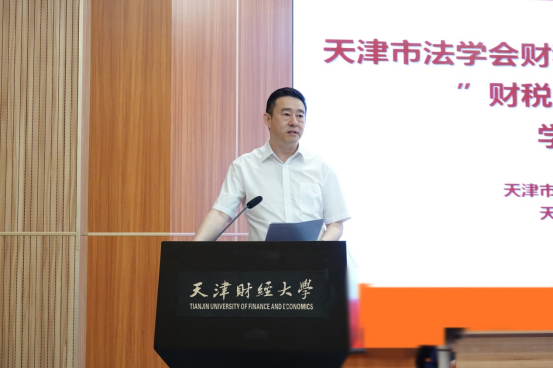 于浩明书记代表天津市法学会赵飞书记,向财税法学研究会的成立表示热烈祝贺。于浩明书记指出,今年是中国共产党成立100周年,是顺利落实完成好以国内大循环为主体,国内国际双循环相互促进新发展格局的重要一年,需要相应的制度、法律法规予以规范促进和保障。成立财税法学研究会,有利于凝聚全市财税法学理论和实务界的社会力量,对财税在立法、执法、司法各环节法律问题的深入研究,有利于天津市的法治建设。