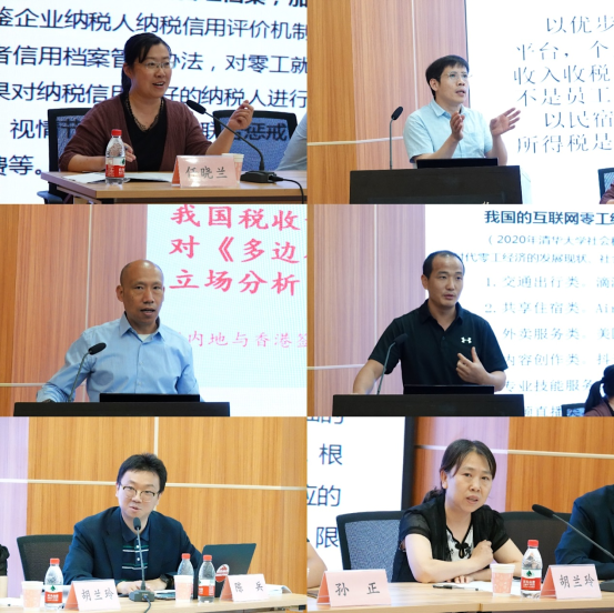 大会主题研讨环节由我校任晓兰教授主持,天津工业大学付大学教授就共享经济税收征管的挑战对策问题、天津商业大学励贺林教授对我国税收协定和《多边公约》的关系问题、我校孙正副教授对互联网零工经济税收征管方式问题,进行了大会主题发言。南开大学陈兵教授和天津师范大学胡兰玲教授进行了精彩的与谈。