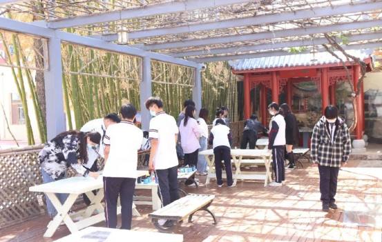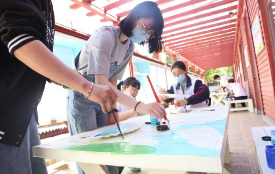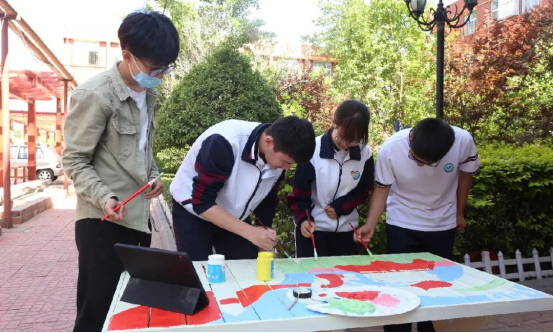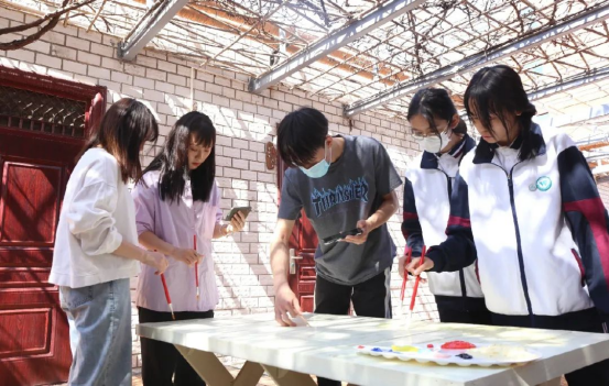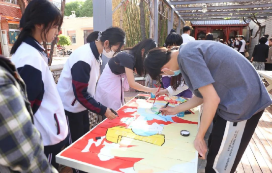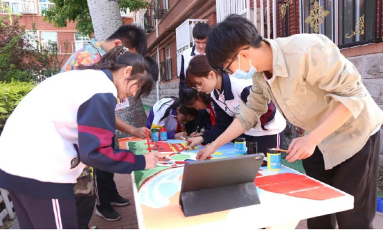 共建协议签约仪式后,财大艺术学院党员代表携手微山路中学学生、财大附小学生在微山路中学的致知创新坊、翰墨苑等地共同开展了文化艺术创作活动,并以党史学习为主题进行了手绘校园活动。
