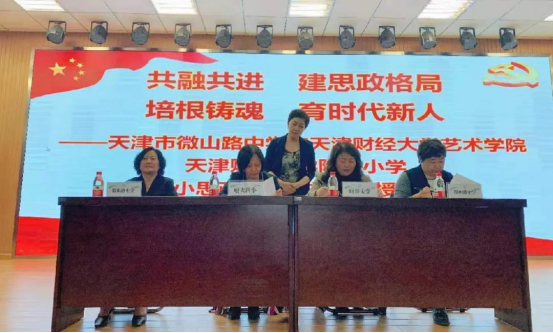 习近平总书记在与思政课教师座谈会上指出,“要把统筹推进大中小学思政课一体化建设作为一项重要工程,推动思政课建设内涵式发展。”在大中小一体化思政建设的指导下,5月7日,天津财经大学艺术学院与微山路中学、财大附小共同签订了一体化共建协议。