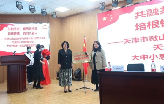 天津财经大学艺术学院自2017年起与财大附小签订合作协议,在共建近五个年度开展活动近百场的基础上,此次进一步携手微山路中学,三方将共同开展大中小一体化共建活动,共同致力于校园文化建设和学生健康成长,为大中小学的学生们逐步系好人生的每一颗扣子。