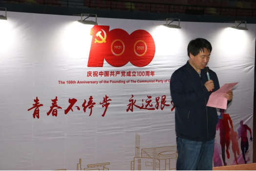 随后,商学院党委副书记石宏卫致辞。他简要回顾了中国共产党的百年奋斗史,号召青年学子从历史中汲取奋进力量,在将来的学习工作中,将自己的理想融入到祖国发展中去,为实现两个一百年的奋斗目标,实现中华民族伟大复兴的中国梦贡献青春力量。