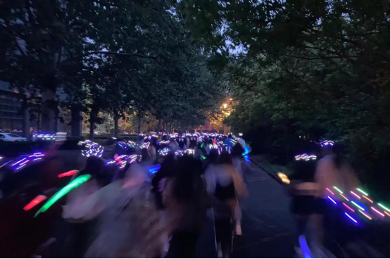 随着一声枪响,荧光夜跑在热烈的欢呼声中正式开启!