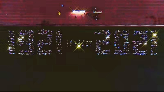 华灯初上,夜幕始降,伴随落日的余晖,600名积极分子组成的“1921”-“2021”字样渐进清晰,与夜空的星辰交相辉映。