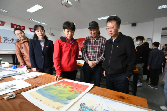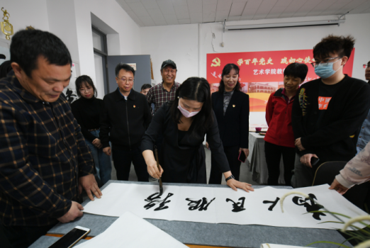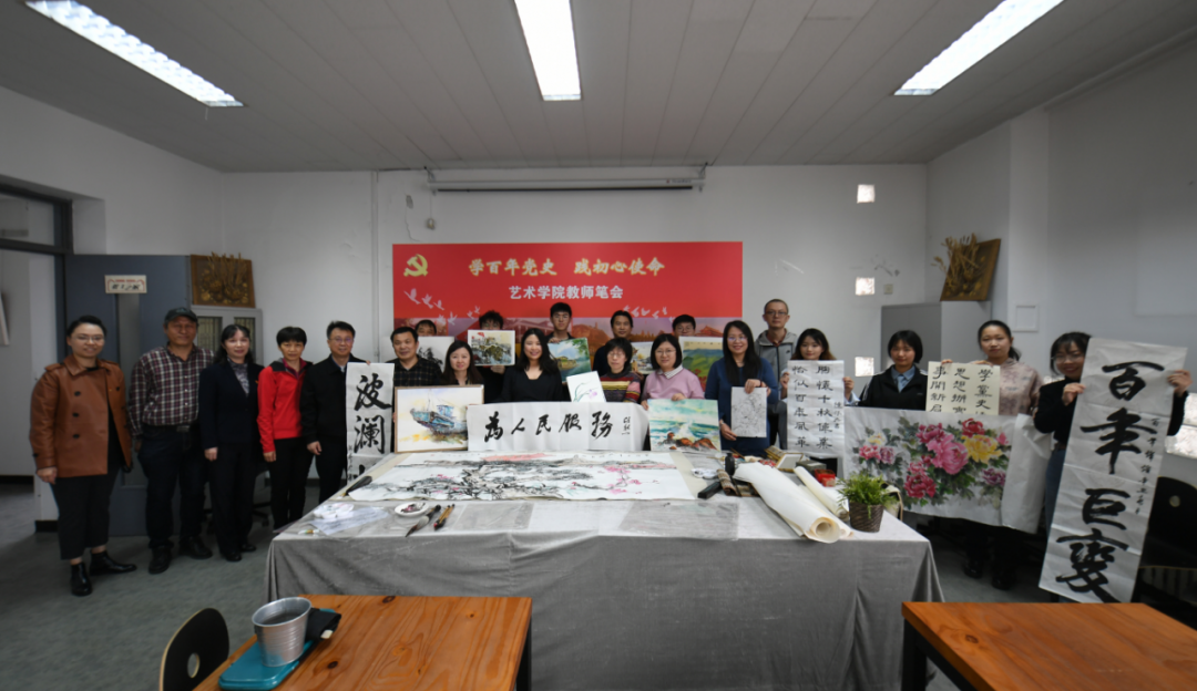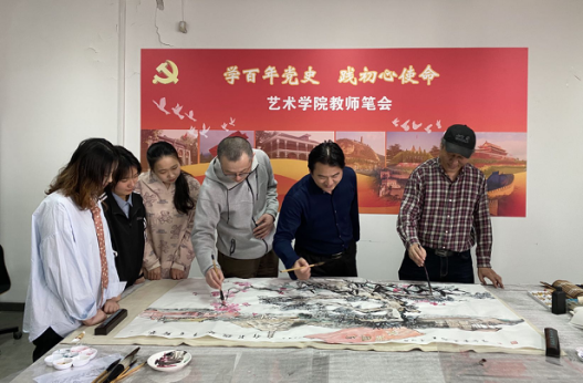 艺术学院在党史学习活动中,紧密结合课堂教学和专业建设,围绕建党百年纪念活动,开启系列创作活动。近日,校工会与艺术学院工会联合举办“艺绘百年”专场笔会活动。校党委副书记校工会主席马岩、校工会常务副主席高雅平、副主席王洋出席了本次活动。