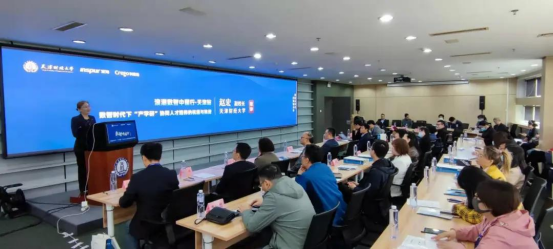 会议第一阶段,浪潮铸远公司马建军总经理等五位专家分别从不同视角进行了精彩的主旨发言,包括:马建军总经理的《数字化转型中的企业实践与人才培养探讨》、东北财经大学会计学院王景升副院长的《会计类专业综合改革与实践》、天津科技大学经管学院华欣院长的《构建智能财务人才培养模式,提高国家一流专业建设水平》、天津商务职业学院武春平副校长的《深化产教融合校企合作,推动数智时代高等商科职业教育高质量发展》以及我校会计学院韦琳院长的《数智时代下,管理会计应用创新与组织高质量发展》。无论是实务专家还是学院领导,都不约而同地在发言中指出:当代经管人才(包括会计人才)的培养要在国家发展战略和科技日新月异的双重背景下与时俱进,理论与实践紧密结合,开创人才培养的崭新模式。