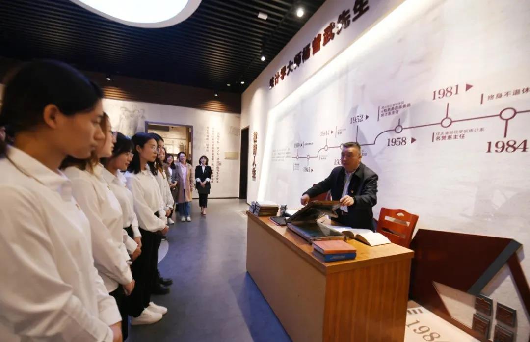 统计学院师生学习了杨曾武先生在我校推行教学改革的历史事迹,共同追溯统计教学体系的建立,折射的是共产党员敢为人先、身先士卒的首创精神。克服重重阻碍推进英文统计教学,与国际接轨,开阔学生视野,折射着共产党人走在时代前列,勇当舵手,引领航向的光辉璀璨。在大师纪念馆里,还原了杨先生以70岁的高龄推进教科书重新编写,并亲自一笔一划手刻蜡板印教材,这就是共产党员,不畏挫折,坚守身先士卒、敢为人先的首创精神,矢志推动中国革命和建设事业一往无前。