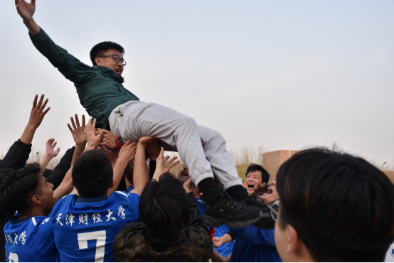 绿茵场上,天财男子足球队在教练陈兆维、刘佳的带领下,用汗水与热爱交织出深厚的友谊、锻炼出强健的体魄,以精湛的球技和周密的战术,让整场比赛亮点纷呈,赢得现场观众阵阵掌声。在点球大战中,最终以4:3战胜对手,一举夺得本次全国青少年校园足球联赛(大学组)天津赛区选拔赛暨天津市大学生足球比赛冠军。