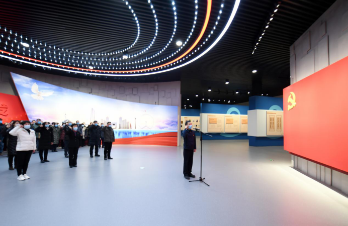 参观结束前,面对鲜红的党旗,大家再次举起右手庄严宣誓,重温入党誓词,用铿锵洪亮的誓言表达了不忘初心、牢记使命的坚定决心。