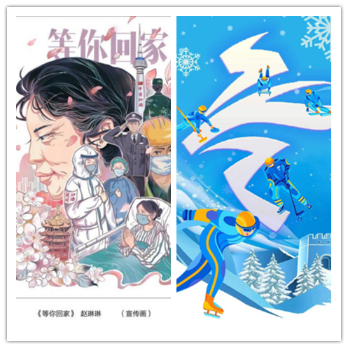 师生积极参与“众志成城·抗击疫情”“艺术海报助力冬奥”等宣传海报征集活动。