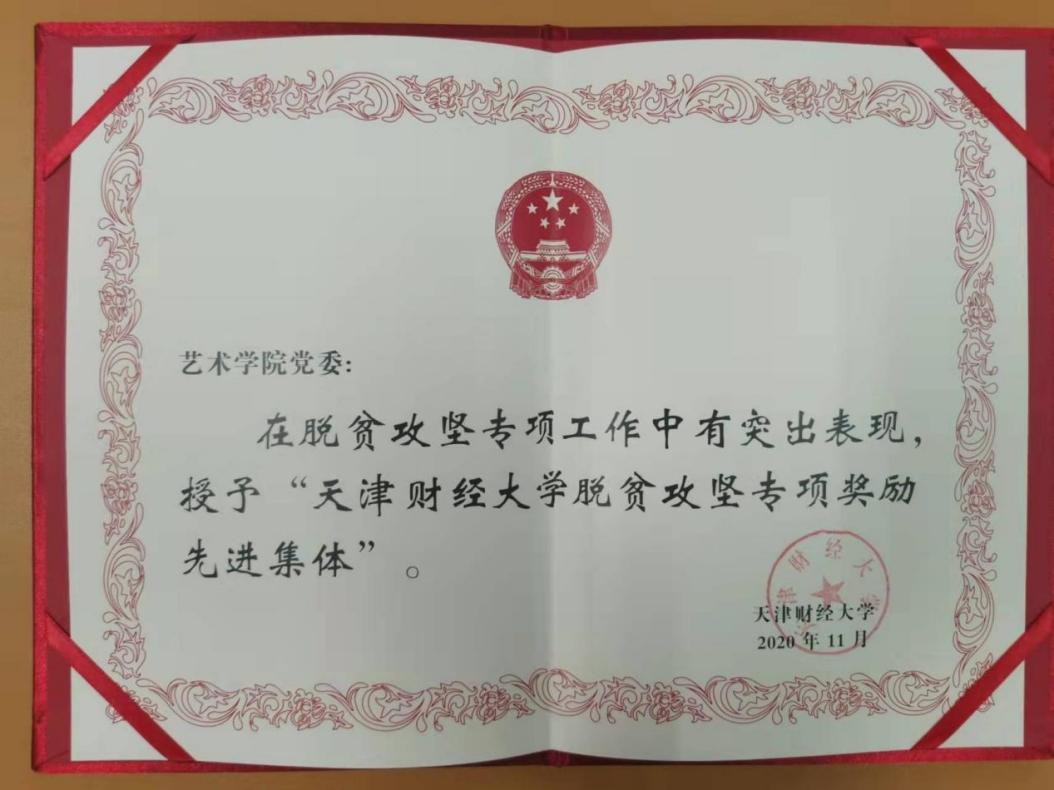 2020年艺术学院党委被授予“天津财经大学脱贫攻坚专项奖励先进集体”