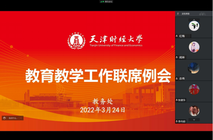 3月24日下午,我校召开2021-2022学年度第二学期本科教育教学工作联席例会。会议采用线上形式进行。各学院院长、教学副院长参加了会议。会议由教务处刘红梅处长主持。