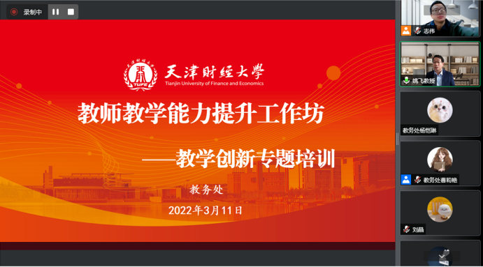 2022年3月11日,教务处举办了第三届“教师教学能力提升工作坊”。本次培训围绕“高校教师教学创新大赛经验交流”展开,采用线上会议形式进行。培训讲座特邀荣获首届全国教学创新大赛(国赛)正高组一等奖、天津市首届全国教学创新比赛正高组第一名,天津工业大学姚飞教授主讲。我校近40名教师参加培训。