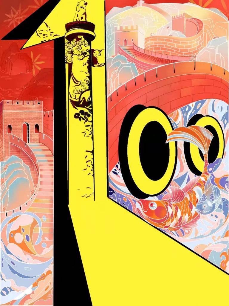 环境2003班 王玲燕海报作品《百年峥嵘》