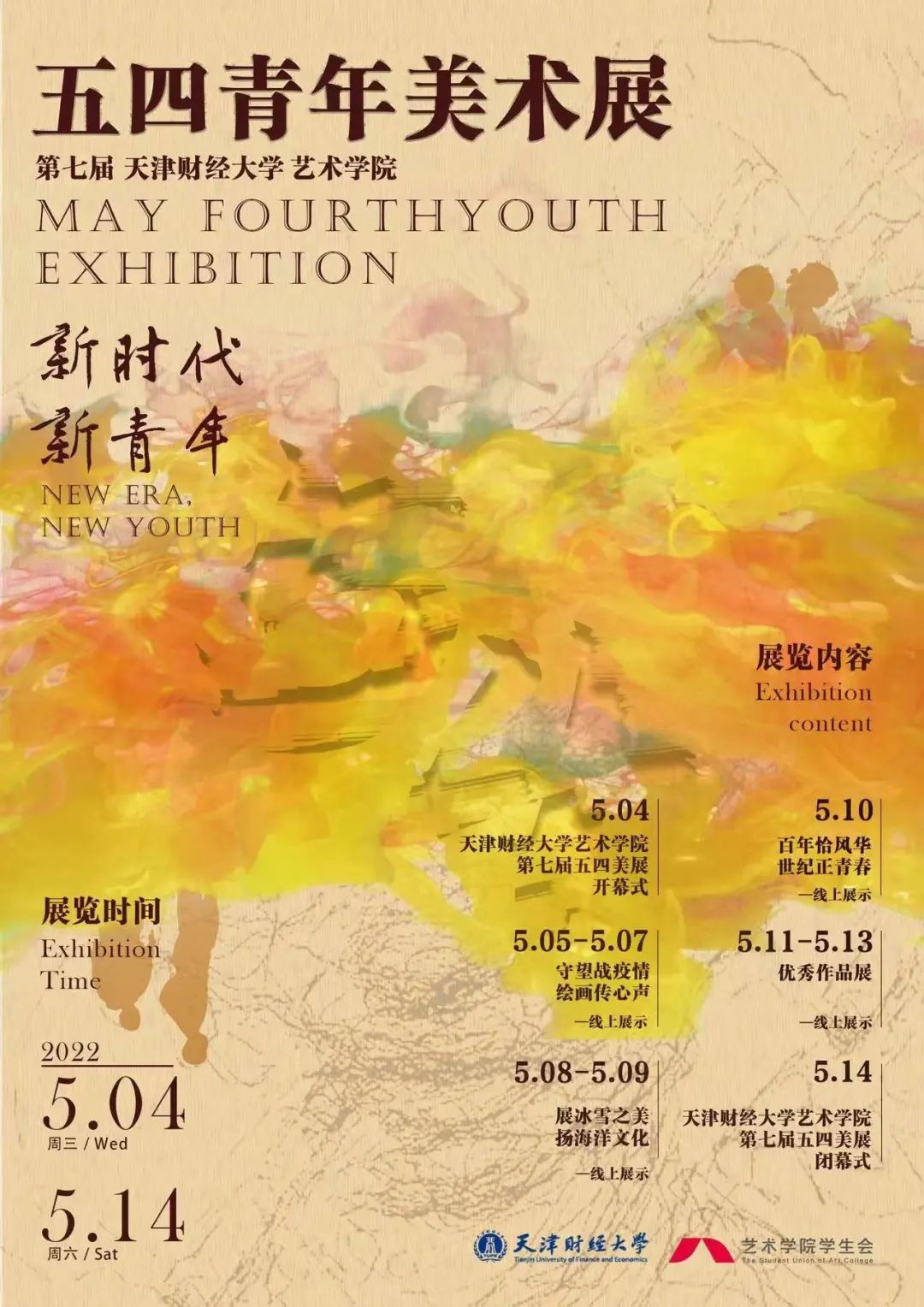 为深入学习贯彻习近平新时代中国特色社会主义思想,学习习近平总书记在庆祝中国共产主义青年团成立100周年大会上的讲话精神,更好地团结带领广大青年建功新时代、奋进新征程,以实际行动迎接党的二十大胜利召开,天津财经大学艺术学院通过线上与线下结合的方式,发动青年团员共同学习《新时代的中国青年》白皮书。同时,在此基础之上,开展了“新时代·新青年”为期十一天的五四青年美展。