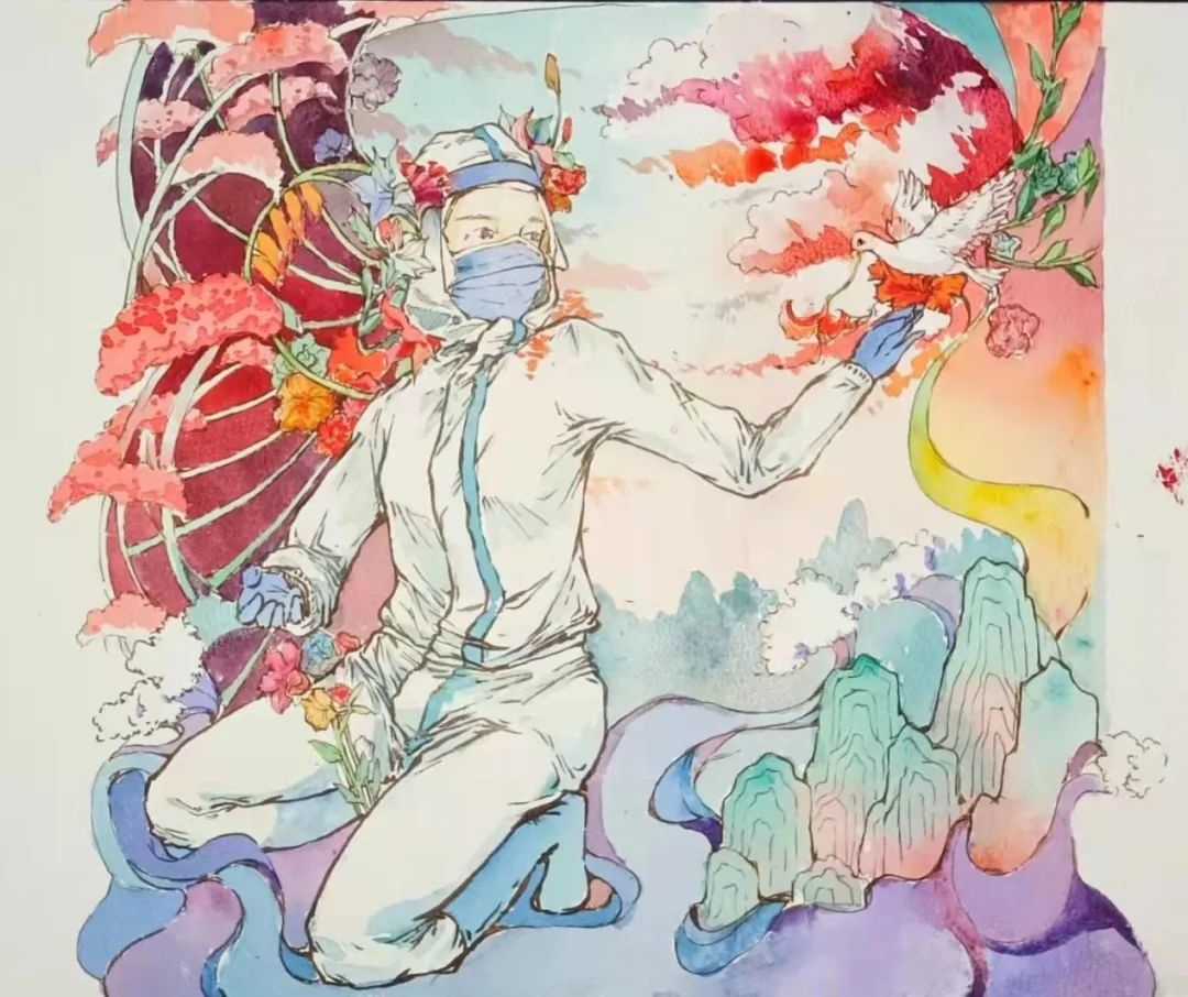 环境2101班 张欣然绘画作品《疫情就是命令》