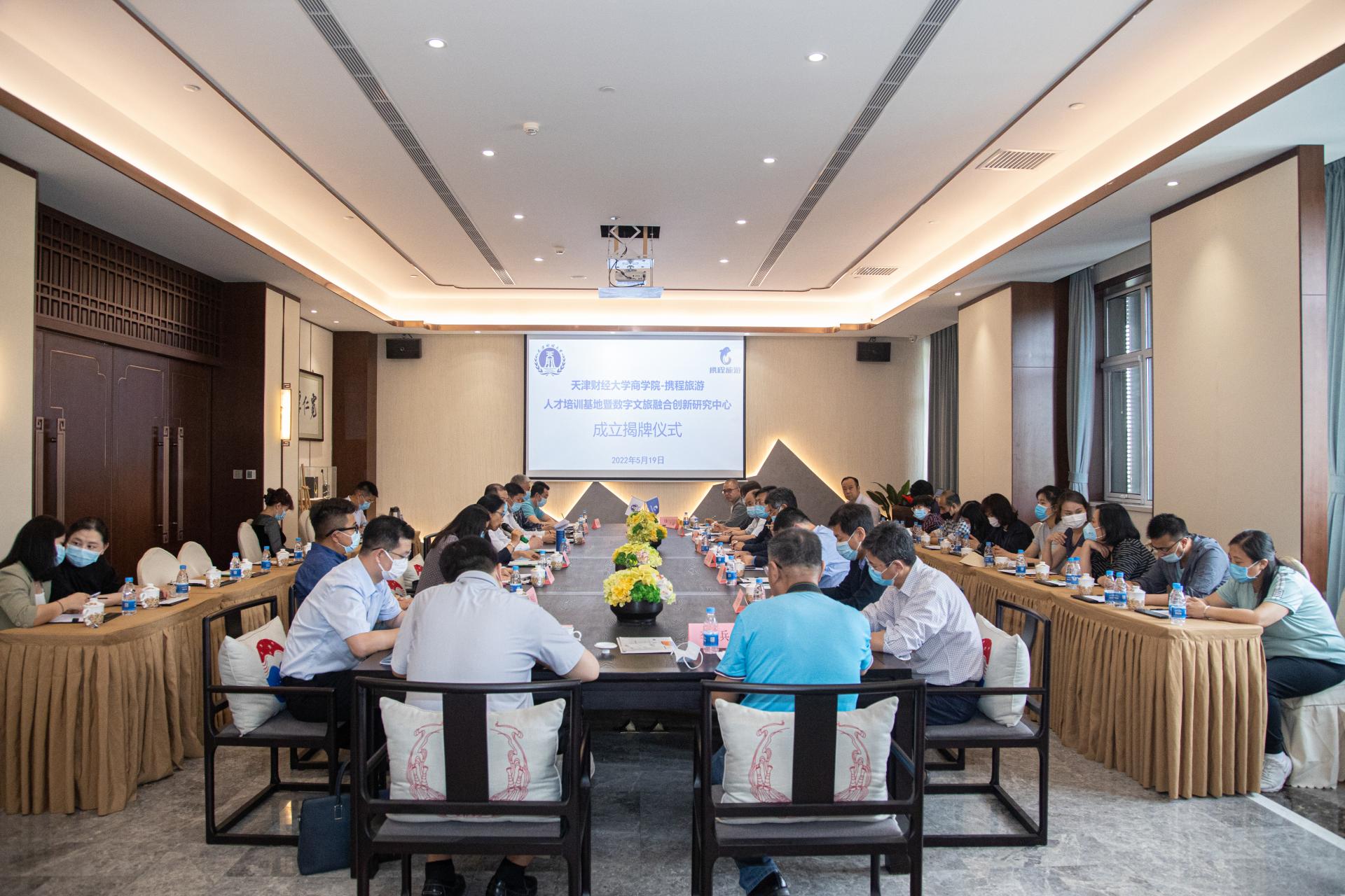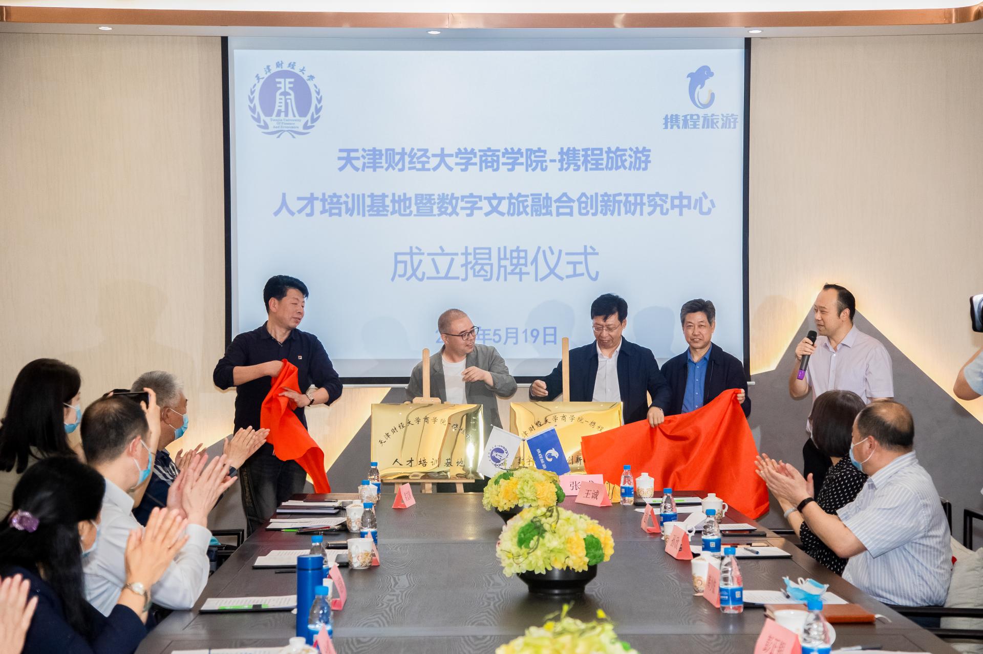 天津财经大学商学院-携程旅游人才培训基地和数字文旅融合创新研究中心简介:在数字经济和文旅融合的背景下,由天津财经大学商学院和天津携程国际旅行社有限公司创始发起、唐熙影视科技(天津)有限公司联合发起的“天津财经大学商学院-携程旅游人才培训基地”和“数字文旅融合创新研究中心”,依托天津财经大学商学院强大的学科优势、雄厚的师资力量、先进的教学设施以及携程领先的数据技术、客户资源、品牌和服务特色等,旨在打造校企联合培养数字文旅人才的时代典范和促进数字文旅融合创新的专家智库。“研究中心”以“文旅融合•数字赋能•城乡发展”为主题,致力于历史文化资源活化利用、大运河国家文化公园建设、红色旅游与红色文化传承、非物质文化遗产与沉浸式演艺、数字文化生产与IP构建、数字化与虚拟旅游体验、旅游大数据挖掘与分析、旅游形象的新媒体传播、城市更新与区域旅游开发、乡村振兴与乡村旅游发展等方面的应用性研究。