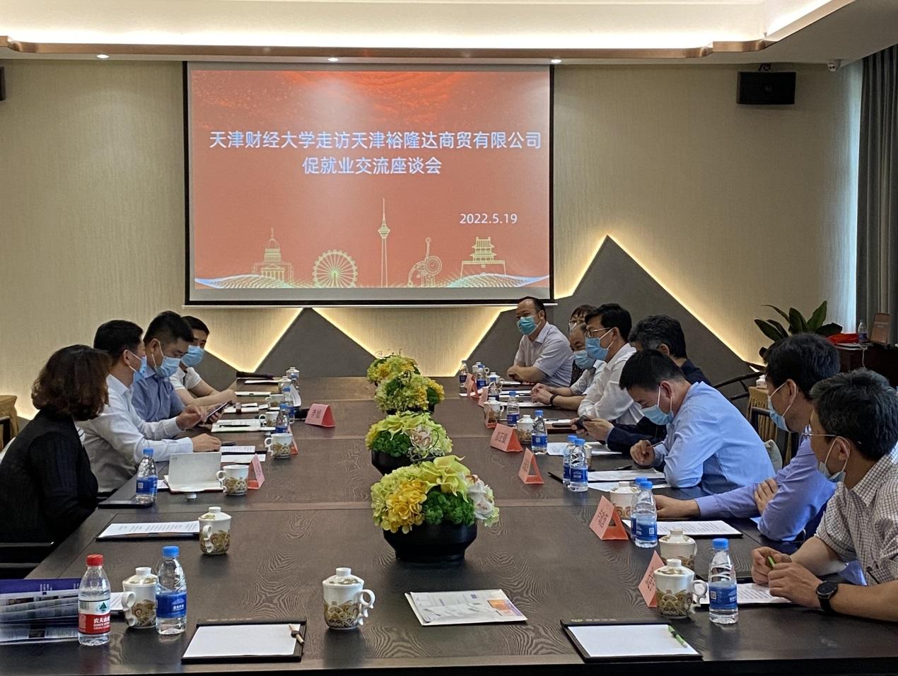5月19日下午,天津财经大学副校长韩少波带队前往天津裕隆达商贸有限公司走访调研,商学院领导班子成员、教师代表、辅导员陪同走访。天津市河东区副区长李旭、天津裕隆达商贸有限公司董事长孙光亮、人事总监李衍颖参加座谈会,与会人员分别围绕毕业生就业、人才培养、校企合作等方面进行了座谈交流。