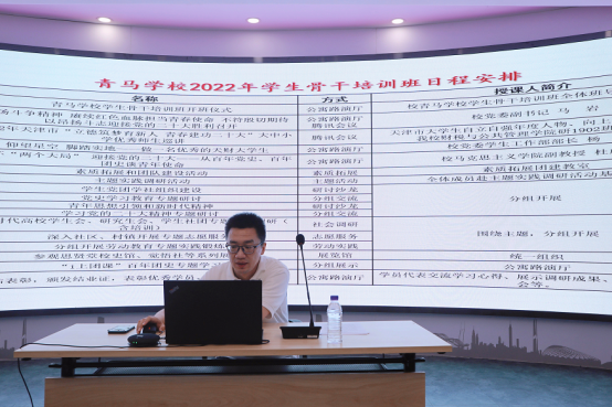 校团委创新实践部钱泓江老师对我校青马学校2022年学生骨干培训班日程安排进行了详细的说明。