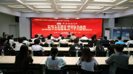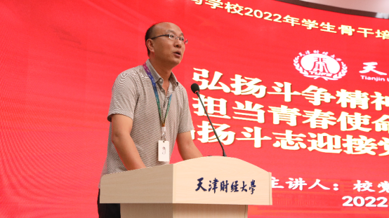 6月24日,为扎实开展“迎盛会、铸忠诚、强担当、创业绩”主题学习宣传教育实践活动和 “青春献礼二十大 奋斗担当铸忠诚 强国有我新征程”主题宣传教育活动,校团委举办天津财经大学青马学校2022年学生骨干培训班首场专题报告会,暨我校共青团干部专题培训。校党委副书记马岩老师出席并做题为“弘扬斗争精神、赓续红色血脉,担当青春使命、不负殷切期待,以昂扬斗志迎接党的二十大胜利召开”的专题报告。校团委全体成员,各学院团委书记和学生骨干代表,及我校青马学校2022年学生骨干培训班全体学员通过线上线下形式同步参加本次报告会。