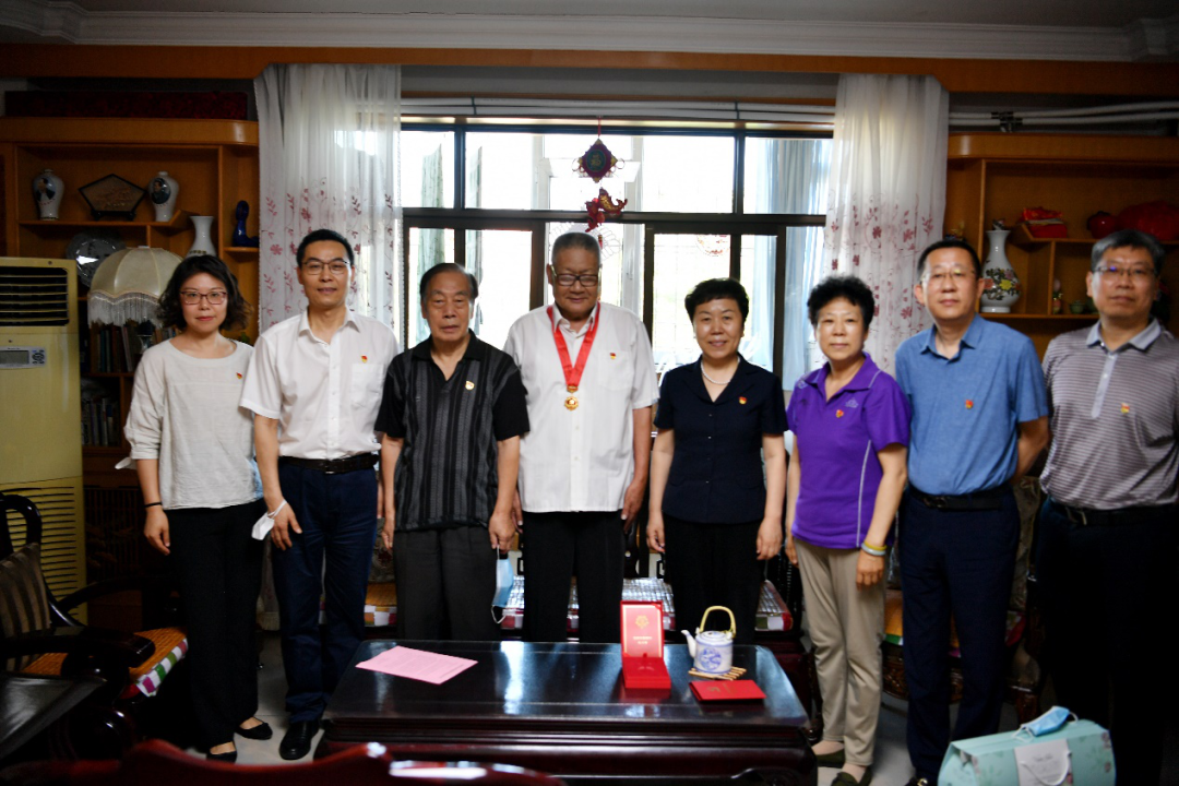我校赵洪恩、张琦、李广英、宋益兰、王长生五位老党员荣获“光荣在党50年”纪念章,校党委书记张亚,校党委副书记、校长刘金兰亲自到老党员家中慰问并为他们颁发纪念章,详细询问了老党员的生活、身体状况,对他们一直以来为党和国家以及学校事业发展做出的贡献表示诚挚的敬意和感谢,并希望他们能够不忘初心,发扬共产党员的先锋模范作用,继续为促进学校事业发挥热量、贡献才智。老党员们也纷纷表示,要“初心不改、红心依旧”,退休不褪色,离岗不离党,力所能及积极做贡献。学校办公室主任和离退休工作部党委班子成员以及退休党支部书记陪同颁发纪念章。