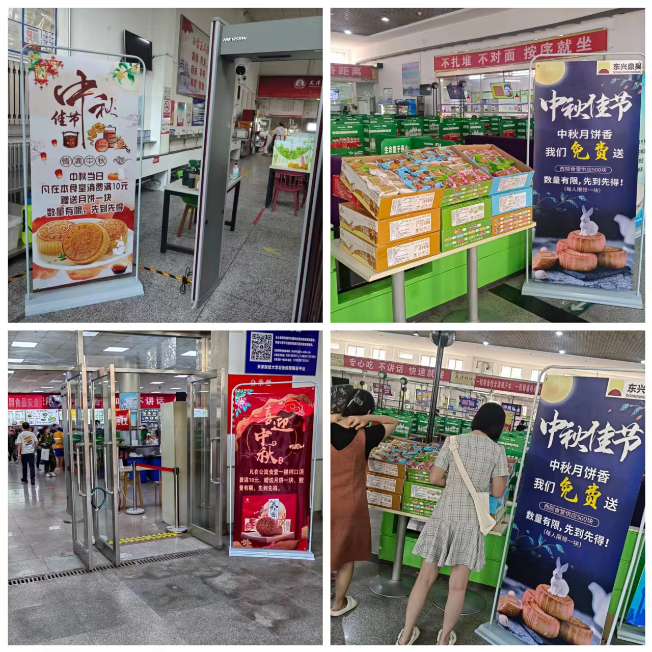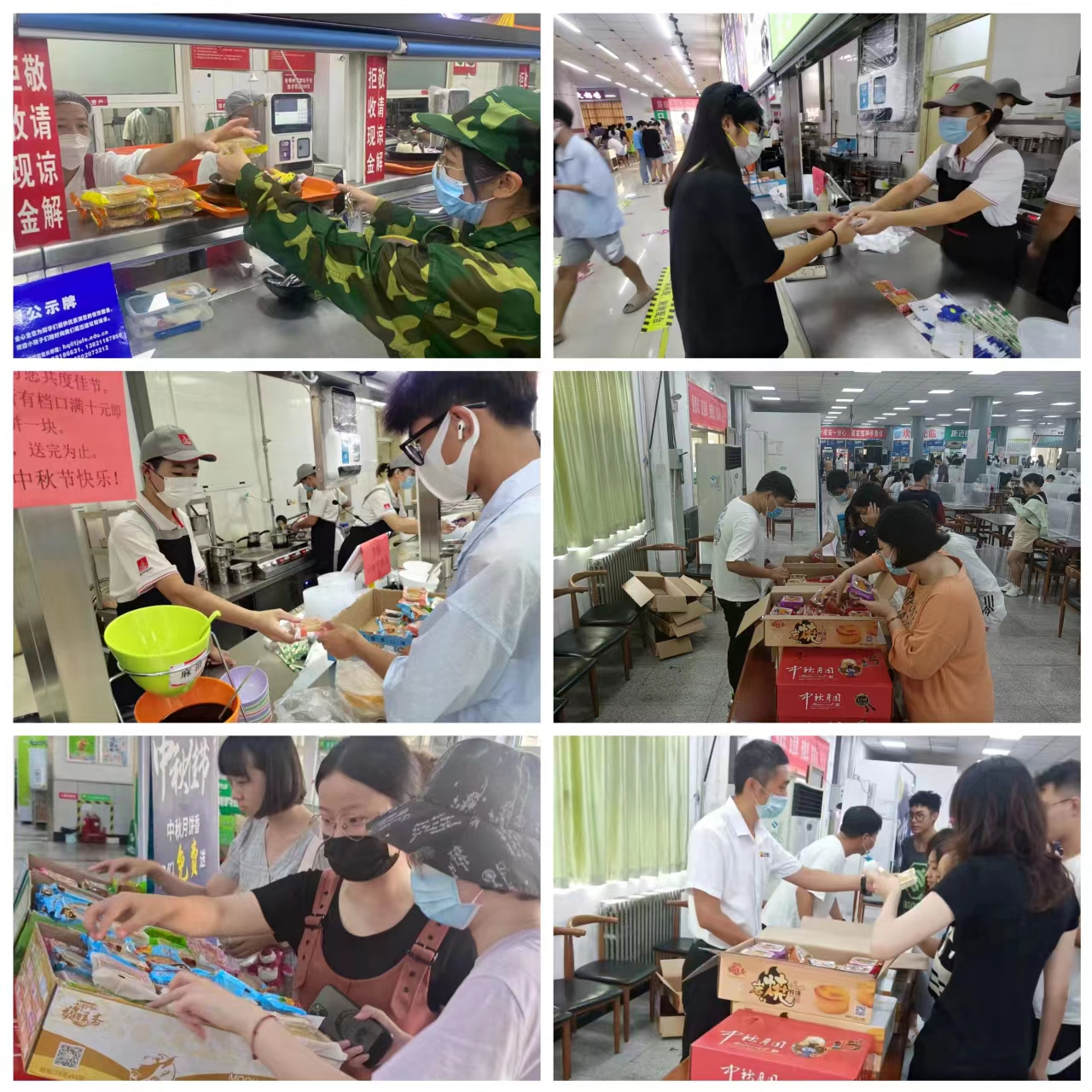 2022年9月10日教师节当天迎来了传统佳节——中秋节。由于疫情防控封校管理,小财子们只能在学校度过节日,而不能与家人相聚。为了营造出中秋佳节的节日氛围,让小财子们在天财园感受到家的温暖,学校后勤部门组织各学生食堂(公寓学生食堂、东院学生食堂、西院学生食堂)为同学们精心策划“免费赠送月饼”的中秋活动。为了采购放心安全、味道香甜可口的月饼,后勤采购组组织各食堂选品试吃,选取多种口味的月饼以满足同学们的需求。同时各食堂精心设计宣传海报,用心打造节日氛围。无论是就餐大厅内的集中发放点,还是各风味档口前,均能看到同学们拿到月饼那一刻的开心笑容。