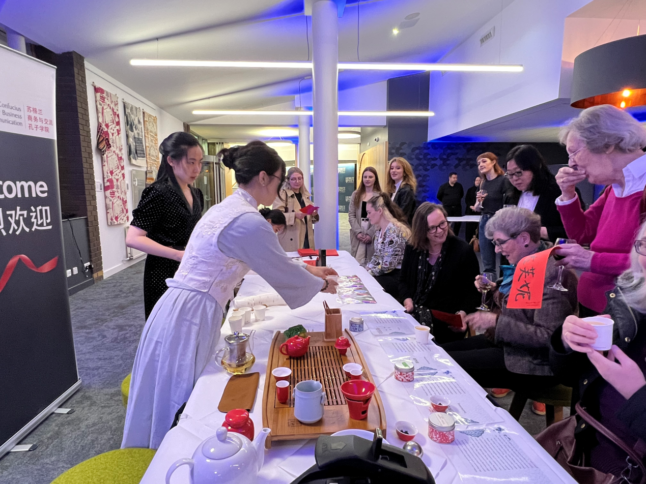 10月5日,苏格兰商务与交流孔子学院举办全球孔子学院日活动,暨与赫瑞瓦特大学纺织学院合作举办纺织专业学生设计作品展开幕。赫瑞瓦特大学秘书长、孔院外方理事会成员鲁斯·莫伊尔女士代表孔院致开幕辞。此次展览作品将在赫瑞瓦特大学持续展出至明年3月,作品设计灵感均来自去年孔院与大学图书馆举办的约翰·汤姆逊中国摄影作品展,学生们将影像作品中的中国建筑、人物、图案和饰品等元素完美融入自己的纺织设计作品中。