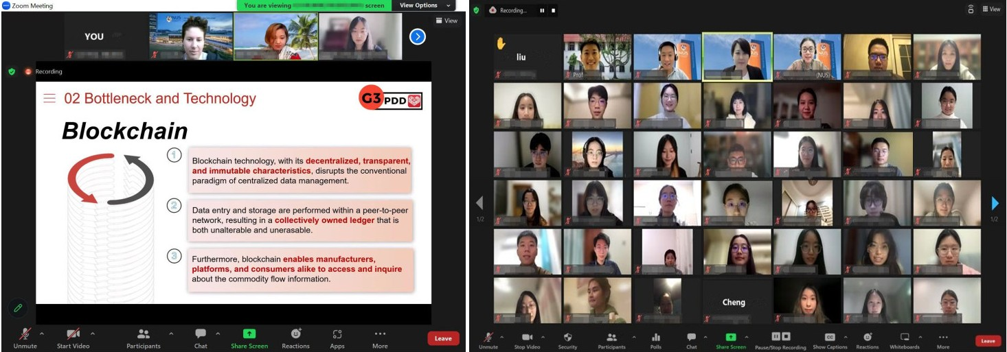 新加坡国立大学、南洋理工大学学术课程项目全程以线上直播形式进行,由两校资深教授讲授。项目课程突出了新国大、南大优势特色学科,涵盖了金融科技与数字商业、国际经济与金融、数据分析与金融工程、商业法以及商业分析等专业内容。学生们与教授导师云端共赴思维盛宴,聆听新知智言,学习探究具有挑战性和创新性的前沿问题,做到学以致用、知行并进。项目还以辅导研讨和专题讲座的形式,从习题解析、论文写作、科研方法、留学申请等方面为学生答疑解惑、分享经验,激励了学生追求学术探索精神,启迪了学生对未来学业的思考和展望。