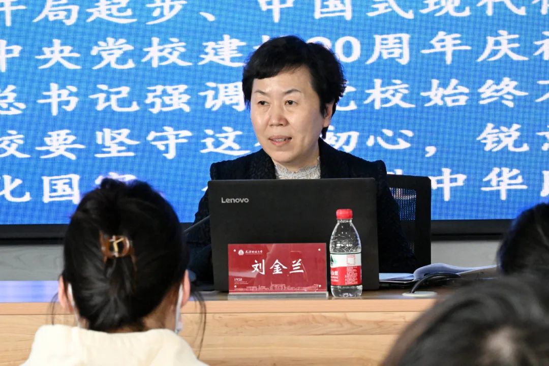为深入贯彻习近平新时代中国特色社会主义思想和党的二十大精神,做好学生思想政治教育工作,3月10日,校党委书记、校长刘金兰以“中国式现代化与当代大学生历史使命”为题,为辅导员和学生讲授“开学第一课”。课程由党委常委、宣传部部长黄娜主持。