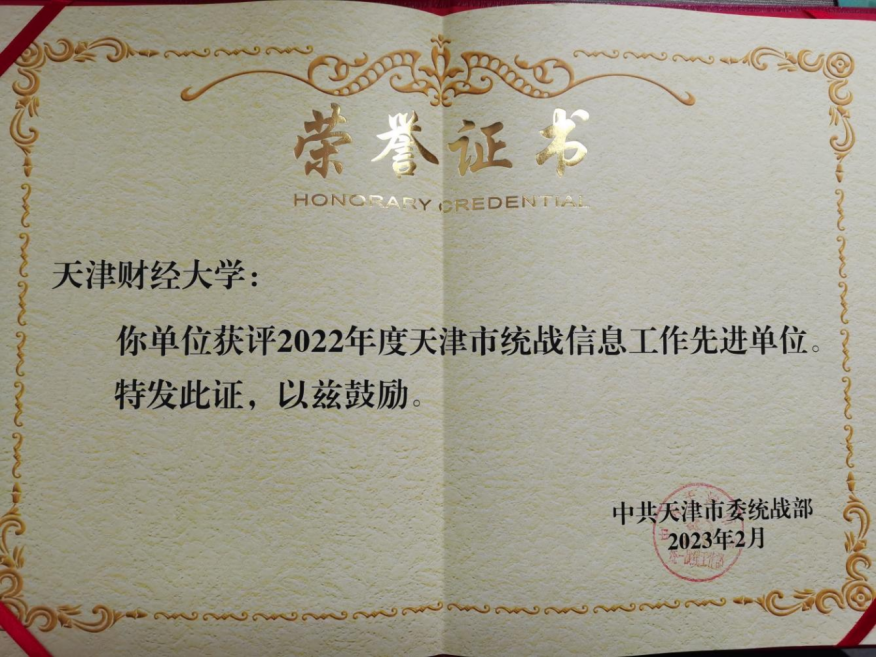 日前,我校被市委统战部授予2022年度天津市统战信息工作先进单位。2022年,在校党委领导下,我校统战工作坚持围绕中心,服务大局,扎实推进党中央、市委、教育两委以及校党委关于统战工作重大决策部署落地落实,统一战线的凝聚力和向心力不断增强,“大统战”格局日益巩固。