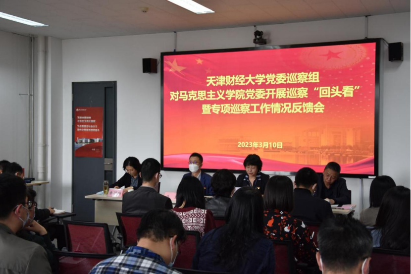 3月10日下午,我校召开第二届党委第六轮巡察情况反馈会。此次巡察是按照全市统一部署,在市委第四巡察指导督导组的指导督导下,对马克思主义学院党委开展巡察“回头看”暨专项巡察工作。校党委副书记、巡察工作领导小组副组长侯洁,校党委副书记马岩,派驻纪检监察组、党委组织部、党委巡察工作办公室等相关单位负责同志,党委巡察组部分成员,马克思主义学院党委领导班子成员、全体教职工及学生代表参加了反馈会。