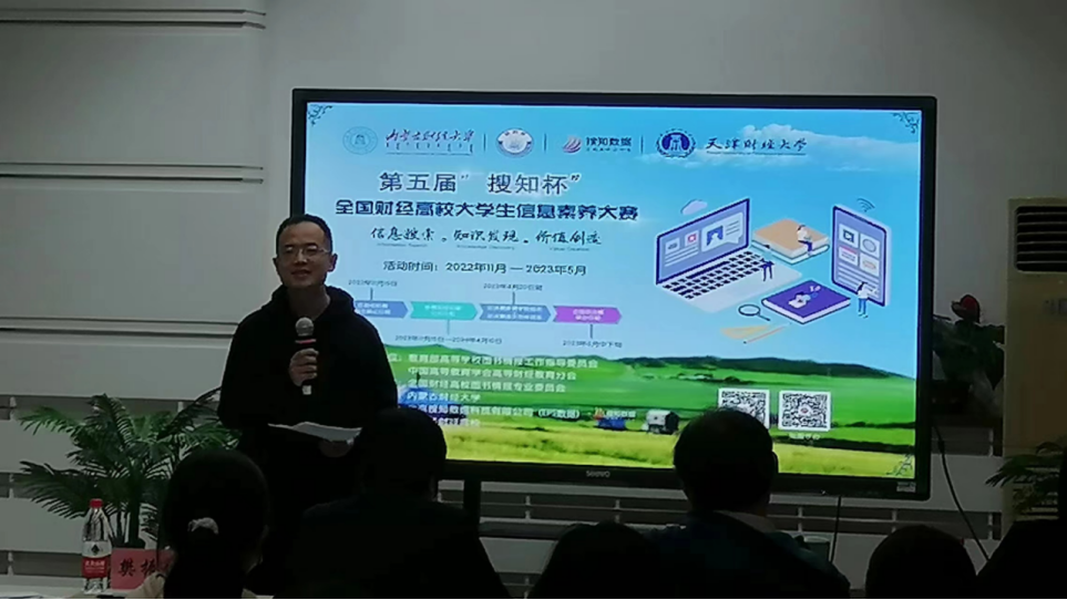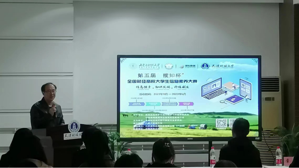 2023年4月7日,第五届“搜知杯”全国财经高校大学生信息素养大赛天津财经大学复赛在逸夫图书馆举行。出席比赛的嘉宾有天津医科大学图书馆馆长常红、南开大学图书馆副馆长樊振佳、我校科研处处长刘乐平、研究生院副院长陆建明、管理科学与工程学院副教授王建亚、图书馆党总支书记侯宗杰、理工学院院长兼图书馆馆长唐承秀、图书馆副馆长王南。