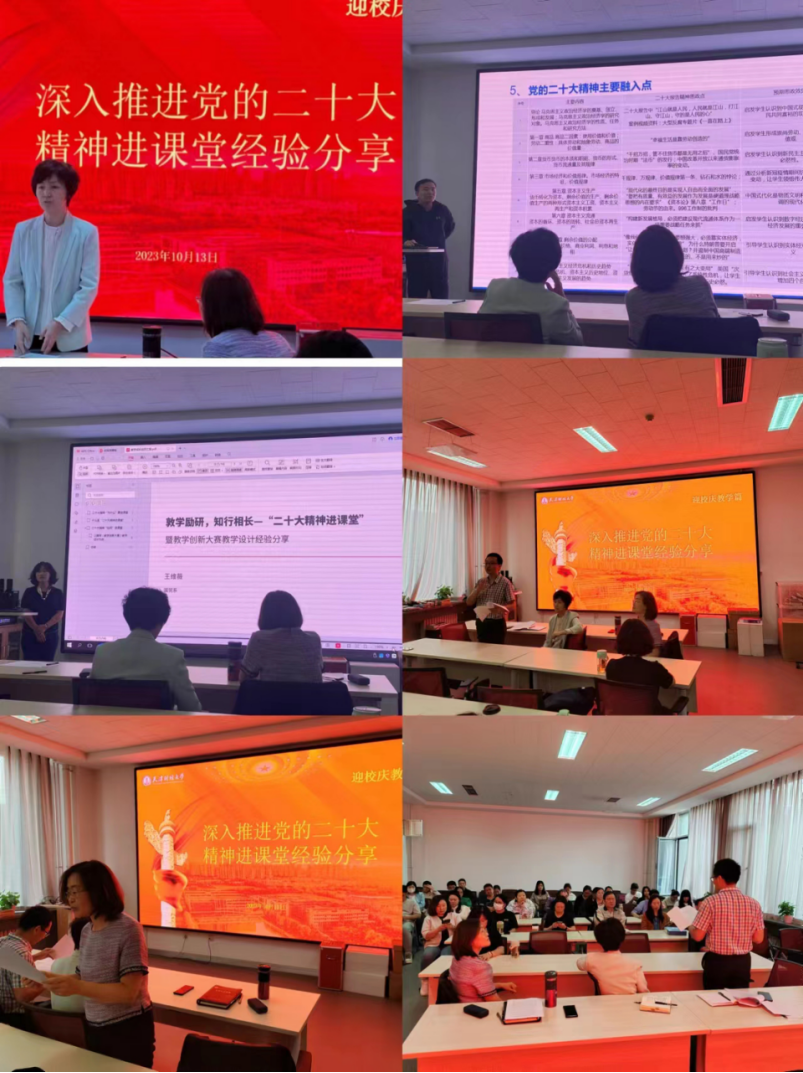 10月13日,经济学院召开深入推进党的二十大精神进课堂经验分享会,会议由经济学院副院长耿伟教授主持,耿伟教授强调了深入推进学习宣传贯彻党的二十大精神、深入开展学习贯彻习近平新时代中国特色社会主义思想的重要性,号召全体教师以此为思想引领,切实推动学院教学工作高质量发展。韩廷波书记强调要把学习宣传贯彻党的二十大精神作为首要的政治任务和头等大事,以深刻领悟、全面宣传、扎实贯彻为重点,持续推进开展党的二十大精神学习宣传贯彻工作,真正筑牢“学”的基础、织密“思”的空间,做足“用”的文章,着力在师生学深学透、入脑入心上下功夫。院长齐俊妍教授传达了习近平总书记关于数字经济发展的重要讲话精神和贯彻落实国家“十四五”规划数字经济部署要求,阐述了产业数字化转型与数字产业化发展等问题,希望老师们在充分挖掘数据要素价值,激活经济发展潜力,释放数字经济活力,健全完善数字经济治理体系,确保数字经济安全有序、规范健康发展等领域展开进一步的科研探索。王维薇副教授结合教学竞赛和教学能力培训的相关心得体会,通过详细分解教学设计的撰写和实施,把党的二十大报告中新理念、新提法、新论断全方位融入到国际经贸专业课的课堂教学中,将其作为贯穿课程的核心内容进行讲授,让党的最新理论创新成果“带着热气”进教案、进课堂、进学生头脑;杨善奇博士分享了党的二十大精神融入政治经济学课程思政建设报告,该课程思政项目已顺利通过学校的验收。杨老师通过重新修订教学大纲、教案和编纂教学案例集等方式将党的二十大精神有机地融入到马克思主义政治经济学概论的课堂,取得了一系列成效。带领学生研读马列经典著作,发表学术期刊论文,参加大创项目,广受学生好评,还将马克思主义政治经济学概论教材里各章节中的经典理论与党的二十大精神有效融合的思政点进行了总结和分享,在加深学生对经典理论知识点理解的同时也提高了课程思政的教学效果。