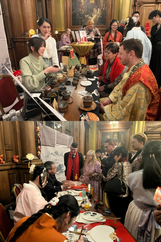 孔院与苏格兰华人企业家协会合作举办新春庆祝活动,首场“龙年品龙井”“吉祥绘标识”等定制化活动的开展,彰显了孔院发展特色与商务功能,受到民众和机构的广泛认可;第二场活动围绕“元宵佳节”主题在爱丁堡市政厅举行,众多当地青年参与其中,爱丁堡市议会议长、副市长和中国驻爱丁堡副总领事到场祝贺,孔院精心制作“纸扇作画”“人像剪纸”,作为纪念礼品为现场嘉宾送上诚挚祝福,在欢庆热闹的气氛中,孔院龙年春节系列活动画上了圆满的句号。