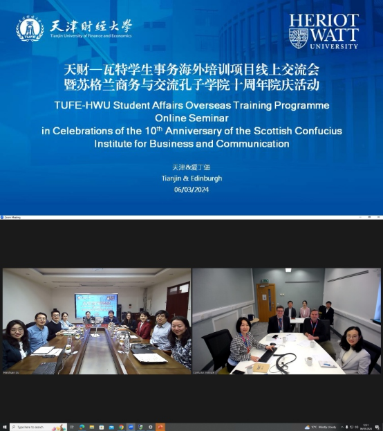 此次天财—瓦特学生事务海外培训项目线上交流会是苏格兰商务与交流孔子学院十周年院庆系列活动的首场线上会议。以学生服务主题作为孔子学院院庆活动的开端,进一步彰显了我校以学生为本的办学宗旨,也强调了孔子学院为全世界学生提供汉语学习服务的职能。交流会的成功举办为后续孔院院庆活动的顺利开展奠定了良好基础。